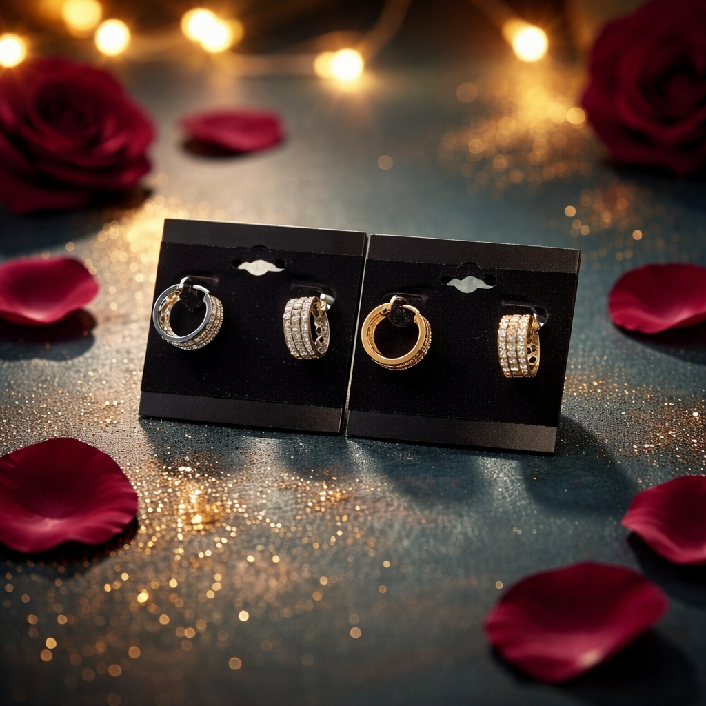 Arracada 3 líneas de circonia plateado bañado en or y plateado plata .925 en baño de rodio/ Arracada 3 lines of zirconia bathed in rhodium silver and silver bathed in gold silver .925