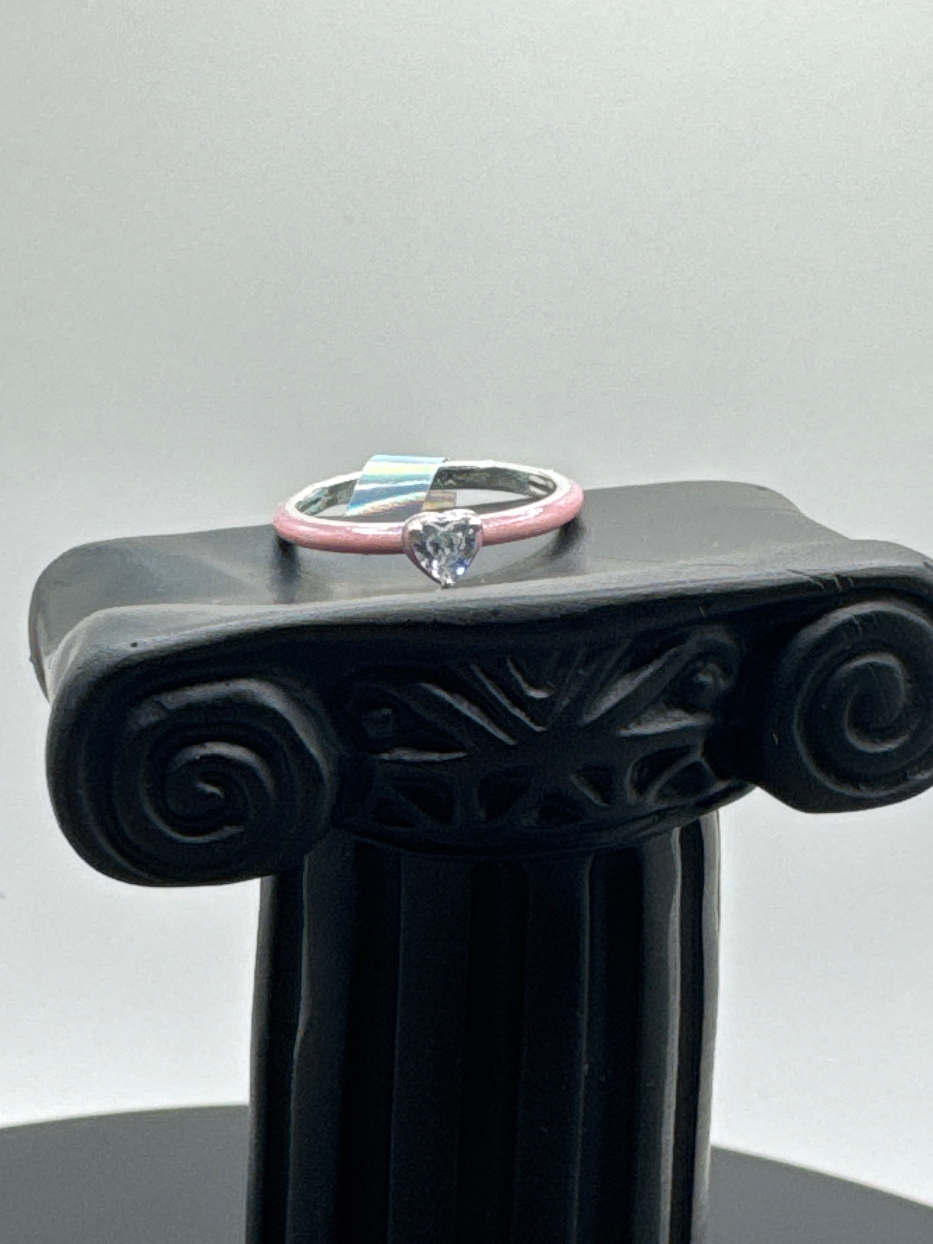 Crafted from high quality silver .925, this elegant ring features a delicate pink, heart design....